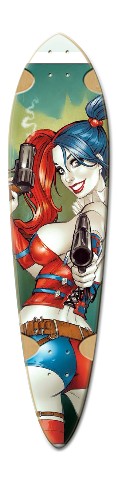 Design your own custom Dart pintail! This board is 9.5" x 39.25". Add your own pictures, text and more and make a unique board that is uniquely you. This board is a very wide pintail which is perfect for smooth cruising and longer commutes. For going down a nice hill or carving this is going to be the best choice. A classic beach cruiser we've cut the wheel wells out a little to give you a little more room to squeeze out on big wheels and huge turns. We see a lot of this deck style out around town because the reduced weight makes it a real commuter's skateboard.