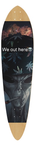Design your own custom Classic Pintail! This board is 10.25" x 42". Add your own pictures, text and more and make a unique board that is uniquely you. This board is a very wide pintail which is perfect for smooth cruising and longer commutes. For going down a nice hill or carving this is going to be the best choice. We see a lot of this deck style out around town because the reduced weight makes it a real commuter's skateboard.
