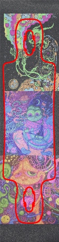Your custom design will be printed on the well known Jessup brand with regular coarseness. The size is for a 8" deck. Your grip will come installed on your deck by default ( additional $4.50).