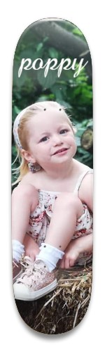 Our Park Skateboard 8.5" x 32.463" is perfect for the skate park or the streets. This is a traditional, standard Park deck, but with YOUR custom design printed on it! Our boards are strong and have great pop! Making it easy to ollie nice and high. This board is works well for any skill level and is fun to ride. This deck is made of 7 plys of premium Canadian, cold pressed with high quality long lasting glues and has a glossy finish. Specs: Wheelbase: 14.3" / Nose: 7" / Tail: 6.8" Concave Options: Steep (Our bestselling concave option – Steep Nose and Tail with a Center Concave that is medium to deep) OR Mellow (Great for those who prefer flatter decks – Stable with smooth transitions through the Nose, Tail, and Center Concave) *This is deck only, it does not include grip tape, hardware, trucks, or wheelsYOUR DESIGN ON YOUR BOARD