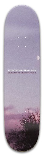 Our Park Skateboard 8.125" x 32.25" is perfect for the skate park or the streets. This is a traditional, standard Park deck, but with YOUR custom design printed on it! Our boards are strong and have great pop! Making it easy to ollie nice and high. This board is works well for any skill level and is fun to ride. This deck is made of 7 plys of premium Canadian Maple, cold pressed with high quality long lasting glues and has a glossy finish. Specs: Wheelbase: 14.3" / Nose: 7" / Tail: 6.8" Concave Options: Steep (Our bestselling concave option – Steep Nose and Tail with a Center Concave that is medium to deep) OR Mellow (Great for those who prefer flatter decks – Stable with smooth transitions through the Nose, Tail, and Center Concave) *This is for a deck only, it does not include hardware, trucks, or wheelsYOUR DESIGN ON YOUR BOARD