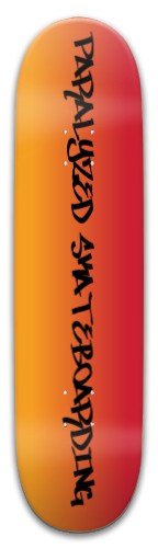 Our Park Skateboard 8" x 31.775" is perfect for the skate park or the streets. This is a traditional, standard Park deck, but with YOUR custom design printed on it! Our boards are strong and have great pop! Making it easy to ollie nice and high. This board is works well for any skill level and is fun to ride. This deck is made of 7 plys of premium Canadian, cold pressed with high quality long lasting glues and has a glossy finish. Specs: Wheelbase: 14" / Nose: 7" / Tail: 6.6" Concave Options: Steep (Our bestselling concave option – Steep Nose and Tail with a Center Concave that is medium to deep) OR Mellow (Great for those who prefer flatter decks – Stable with smooth transitions through the Nose, Tail, and Center Concave) *This is deck only, it does not include grip tape, hardware, trucks, or wheelsYOUR DESIGN ON YOUR BOARD