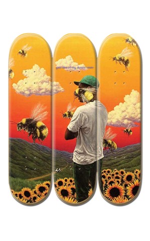 This product features three 8" skateboard decks that are lined up horizontally for you to create your design across all three decks continuously, and make a skateboard mural that can hang on your wall. Total Size: 32" x 24" Note: The 3 decks will be shipped together stacked (not fixed together). Hang them individually in any arrangement you like. *This is deck only, it does not include grip tape, hardware, trucks, or wheels